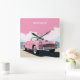 Custom Name Pink Classic Car Square Wall Clock