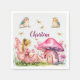 Introducing our Custom Name Pink Fairy Mushrooms napkin! With a beautiful fairy watching dragonflies while little birds are singing, surrounded by lovely pink tulips and a watercolor pink House mushroom, this napkin brings charm and enchantment to any party!