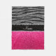 Custom name pink glitter light grey zebra stripes fleece blanket
