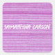Custom name pink stripes textiled square sticker