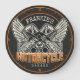 Custom NAME Pistons Wings Motorcycle Biker Garage Gifts (Faux Leather Grain Background) - Customise with your Name or Custom Text!