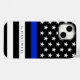A custom name police flag iPhone case. It features a cropped thin blue line police-themed American flag. In between the lines is a spot for your name or your gift recipient's name. Bold and vibrant and a way to show your love for the country and us law enforcement.
