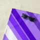 This beach towel design features a striped pattern with lines coloured various shades of purple or white. It also features a customised name in white coloured text within a dark coloured area on the front. [~Z0000000]