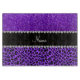 Modern and trendy leopard gift ideas. Purple leopard animal print pattern background and indigo purple glitter (not real glitter) black diamonds stripe (faux diamonds, not real) with hearts and dots personalised with your name gifts or monogram gifts or your initials. Ideal for birthdays, weddings, parties and much more featuring an elegant and traditional fancy lettering.