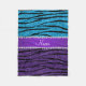 Custom name purple sky blue glitter zebra stripes fleece blanket