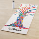 This brightly coloured yoga mat is decorated with a mosaic tree in rainbow colours.