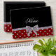 Red diamonds (not real diamonds) polka dots pattern background with a silver glitter bow (faux glitter, not real) ribbon personalised with your custom name gifts or monogram gifts or your initials you can write any words you like featuring an elegant and traditional fancy lettering Elegant gifts for women, ideal for weddings.