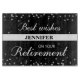 3D looking silver sparkles and words in white, all on a black background. A great Custom Name gift, souvenir, giveaway and party essential to congratulate a man or a woman on their Retirement. A very elegant Congratulations item that you can easily customise.