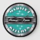 Custom Name Retro 1950s Kitchen Diner Wall Clock - Aqua - It's time for a blast from the past. This Retro 1950s Diner Wall Clock will set the tone for a fun accent in your place. Looks awesome in the Kitchen! Comes in red Too!