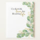 Create a personalised family meal planner with elegant watercolor eucalyptus wreath on white background decorated with two hearts. Use the template text to type your family name and years. Backside cover features a motivational saying Cook with love for healthy life in script and modern fonts. It's a cute gift idea for newlyweds and family for Christmas, New Year or any occasion.