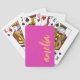 Playing cards featuring your name in an orange script font on a magenta hot pink background. Bold and colourful design.