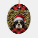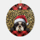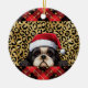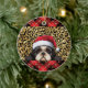 Custom Name Shih Tzu dog Santa hat Buffalo Plaid Ceramic Ornament