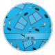 Fun hockey gift ideas. Modern and trendy Custom name sports sky blue with hockey pucks, hockey sticks and a hockey nets pattern background and with blue black stripe personalised with just add your name gifts or monogram gifts or your initials for a unique gift. Sports gift ideas for men and boys and girls. Ideal for birthdays and as christmas gifts.