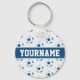 Great blue and white soccer ball sketch patterned keychain with customisable name is perfect for any soccer fan!