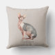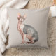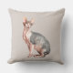 Sophisticated, pastel colour throw pillow with beautiful hairless Sphynx cat on light brown background for cat lovers by PiccoGrande.