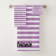Custom Name Stripes Pattern Purple Lavender White Bath Towel Set
