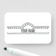 A hand-drawn name tag featuring a soft arched detail and dotted accents.
