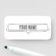 A hand-drawn name tag with a gently curved frame and a subtle speech-style detail at the bottom.