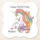 Custom Name & Text Colourful Unicorn Paper Coaster