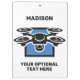 Change the text fields to what you want. Using the editing tool, you can change each font and its size and colour, and the background colour, if you wish. See my store for more drone items.