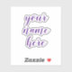 Custom Modern Chic Name Text Script Water Bottle clear Stickers featuring your personalized text in a cute and elegant calligraphy font. The sticker is in a cool dark purple, font style and colors are fully customizable.