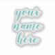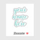 Custom Modern Chic Name Text Script Water Bottle clear Stickers featuring your personalised text in a cute and elegant calligraphy font. The sticker is in a vibrant light turquoise blue, font style and colours are fully customisable.