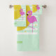 Custom Name & Text Tropical Flamingos Bath Towel Set