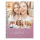 Unique custom gift with 4 favorite photos in a modern photo collage notebook with your name in a trendy hand written script and year below on a purple backdrop. Sweet little personal gift for teens, kids, or besties!