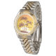 The watch is very nice, the picture is great and the watch looks like quality. The only problem I am having with it is that it is a little too large, and I also can't figure out how to open the clasp. No directions came with it. Very good. The printing is perfect and the watch keeps good time.