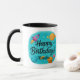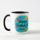 Celebrate in style with this fun turquoise mug featuring “Happy 21st Birthday,” a superscript age, comic-style accents, and a cute muffin. Add any age and name for a personalized birthday gift that stands out and makes the celebration extra special.