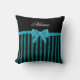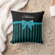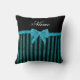 Custom name turquoise glitter stripes bow cushion