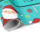 Modern and trendy sports lacrosse pattern with lacrosse sticks, snow, cute santa claus, santa hats, white red snowflakes, green red and yellow stars, green christmas trees with turquoise background and with turquoise black stripe personalised with just add your name gifts or monogram gifts or your initials for a unique gift. Sports gift ideas for men and boys and girls. Ideal for christmas presents.