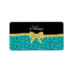 Custom name turquoise swirls gold bow label