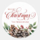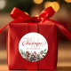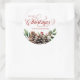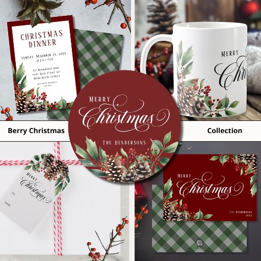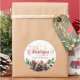 With a white base colour and a watercolor Christmas Decoration with red berries, greenery and pine cones. A swirly red script font in the centre of the sticker saying Christmas. Add your customisable text and family name in the same red. This traditional Christmas sticker are versatile with many uses. Add to your gifting as a part of wrapping and labelling, add to your mailing and envelopes, add on gift bags or other.