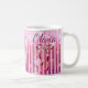Featuring pink watercolor stripes, floating hearts, and a dainty ribbon bow, this mug is the perfect personalized gift for someone special. Add any name to make it truly one-of-a-kind!