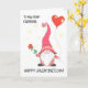 Custom Name Valentine's Cute Gnome and Red Rose Card