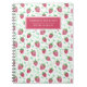 Unique kids office stationery notebook with a watercolor strawberry pattern, custom name template / subject title template. A cute and cool gift for back to school.