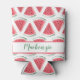 Keep your drinks cool with this can cooler featuring a juicy watermelon pattern with custom name, perfect for your summer beach vacations or poolside adventures.