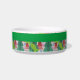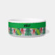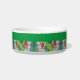 Whimsical, colourful forest scene with flying fish. trees, water, raindrops and the sun. The design on this pet food or water bowl is fun and imaginative. A nature inspired pattern for your dog or cat utilising red, green, orange and pink colours. Customise by adding your dog or cat’s name.