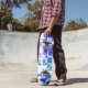 Custom Name; White & Abstract Purple, Green, Blue Skateboard