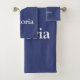 This blue bath towel set has a white ship''s anchor in the centre. Under the anchor you can personalise the towel set with the recipient's name.