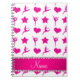 Modern and trendy Custom name gymnastics pattern with gymnast silhouettes with hearts and stars background and with a bling diamonds (faux not real diamonds) with a pretty hearts and dots stripe personalized with just add your name gifts or monogram gifts or your initials for a unique gift. Gymnastics gift ideas for women and girls. Ideal for gymnasts.
