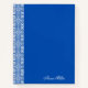 Elegant blue notebook featuring a white vector floral pattern with a customisable name and year on the cover. Perfect for journalling, school, planning, or as a thoughtful personalised gift.