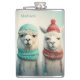 The flask itself is fine. It’s a cheap flask, obviously bought in bulk, however am prepared to overlook that. Given that it is a personalized item, I would have liked to have seen gift boxing instead of the generic packaging. Terrible printing, and/or quality. It’s a cheap, tacky vinyl. It is not cut straight and is also applied in a way that it is overhanging the bottom, causing the glue to catch on items and it will eventually roll and tear, damaging the wrap.