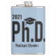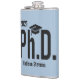The flask itself is fine. It’s a cheap flask, obviously bought in bulk, however am prepared to overlook that. Given that it is a personalized item, I would have liked to have seen gift boxing instead of the generic packaging. Terrible printing, and/or quality. It’s a cheap, tacky vinyl. It is not cut straight and is also applied in a way that it is overhanging the bottom, causing the glue to catch on items and it will eventually roll and tear, damaging the wrap.