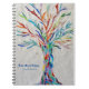 This decorative notebook features a print of a rainbow colored Tree of Life on a pale gray background.