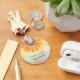 This modern botanical Yoga Instructor Keychain is decorated with a yellow sunflower on a watercolor background.