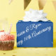 Personalise names, anniversary year or message in white script text on deep blue background; perfect for wrapping that special gift. Click “Edit Design” to change colours and type styles.