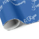 Custom Names, Anniversary, White Script, Deep Blue Wrapping Paper