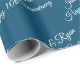 Custom Names, Anniversary White Script, Ocean Blue Wrapping Paper